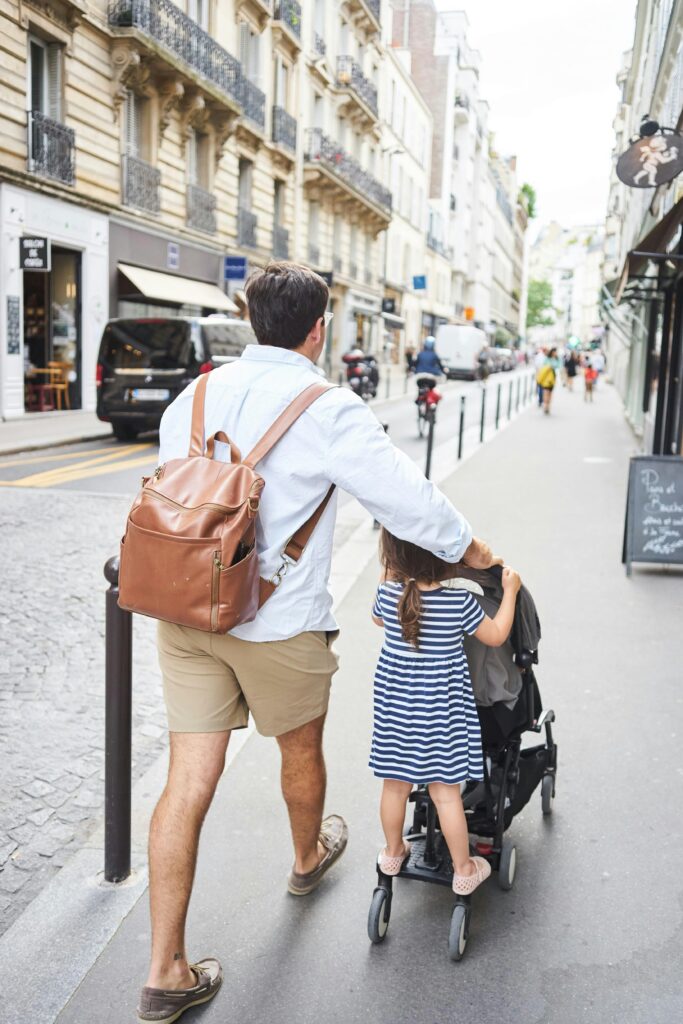 Sidewalks can be narrow, crowded, and uneven. Cobblestones are charming but challenging for small wheels. Parisians walk quickly and may not automatically yield to strollers.